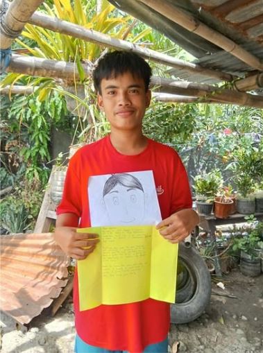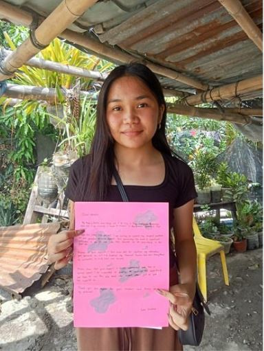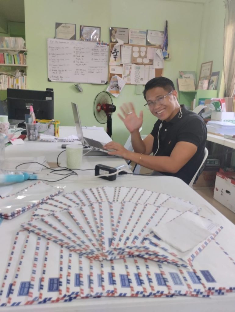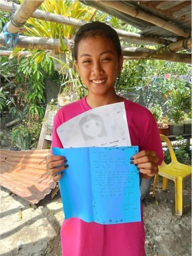 (写真:日本のスポンサーにお礼状を書き、エアメールででフィリピンからお送りしています!)