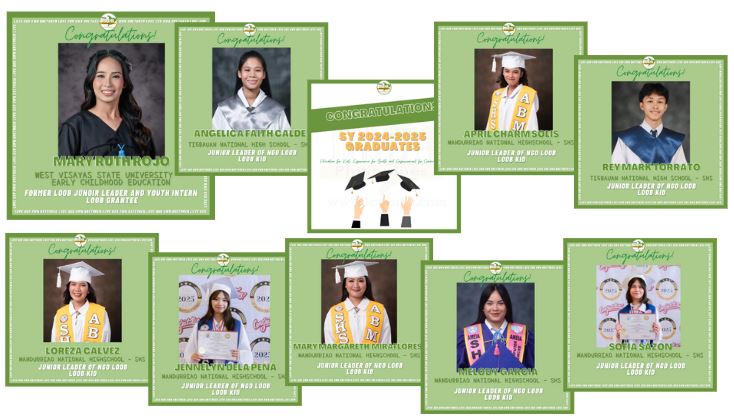 皆さん、いかがお過ごしですか?いつもLOOBの子ども支援活動を応援して頂きまして、本当にありがとうございます。2024年のフィリピンの教育年度(July 29, 2024, to April 15, 2025)が終了しました。今年は大学生1名、高校生8名が無事卒業をすることができました。